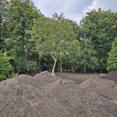 Hoe ver we inmiddels zijn? Het team van HK Groen heeft de volledige tuin afgegraven en flink wat bomen teruggesnoeid en gekapt. Dit was nodig om ruimte, licht en mooie zichtlijnen te creëren.