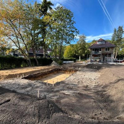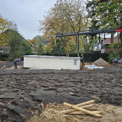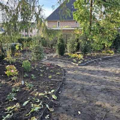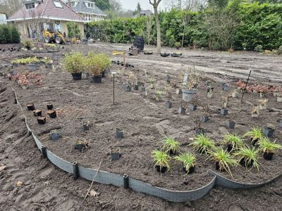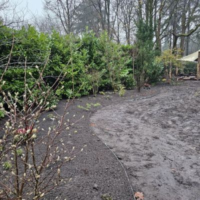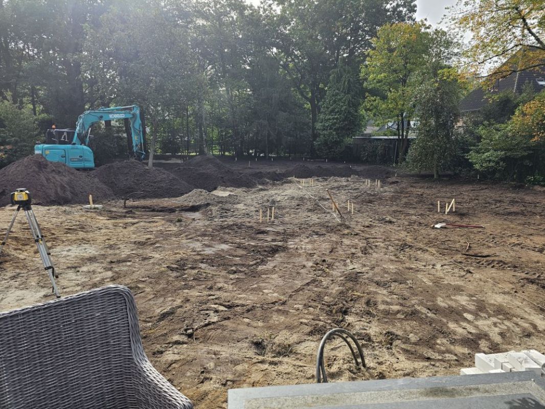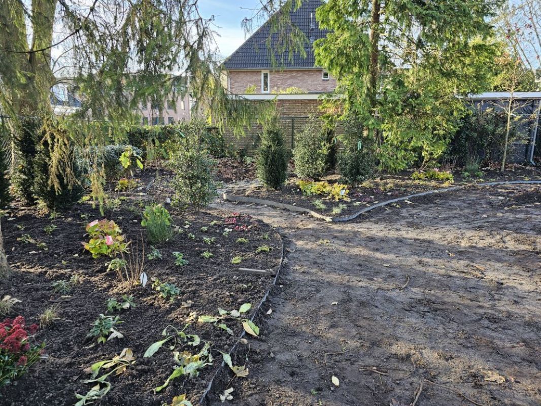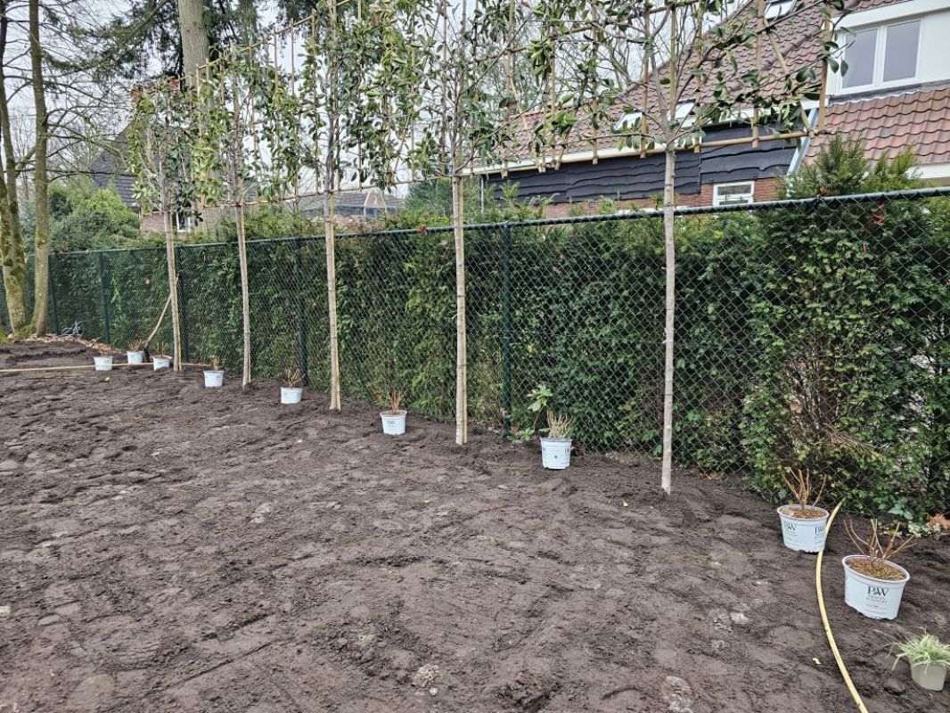 Volgende stappen zijn ingraven van leidingwerk, leggen van bestrating en inzaaien van het gazon. Binnenkort gaan we weer verder met deze mooie tuinaanleg. We houden u op de hoogte!